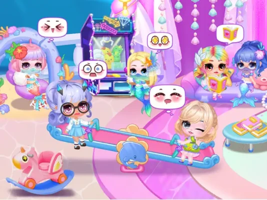 Welcome to this cute and mysterious world, where you'll find a multitude of chibi dolls with various styles, including cute little mermaids! Inside your dream castle, you can play with the dolls, explore the underwater world with the mermaids, and get lost in endless makeup and dress up fun! Come on! Exciting world exploration awaits you!