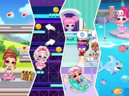 Furthermore, you can enjoy various mini-games! From jumping and running challenges to hospital simulations and memory card matching, there's even a specially designed nail art game for girls! These mini-games are not only incredibly fun but also reward you with coins that you can use in this world to unlock furniture! Quickly dive into the mini-games and play with your Sweet Dolls!