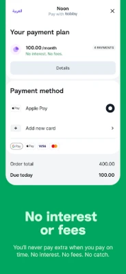 Tabby lets you shop what you love and split purchases into four monthly payments — with no interest, no hidden fees and no surprises. Whether you're shopping online or in store, Tabby gives you control, financial flexibility and peace of mind.