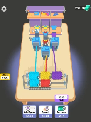 Make your ropes turn in to products!Produce t-shirts with variable designs!Merge your spoons get different colors!Stack your spoons layer by layer to get different products!All fun with easy game play!Enjoy your t-shirt production!