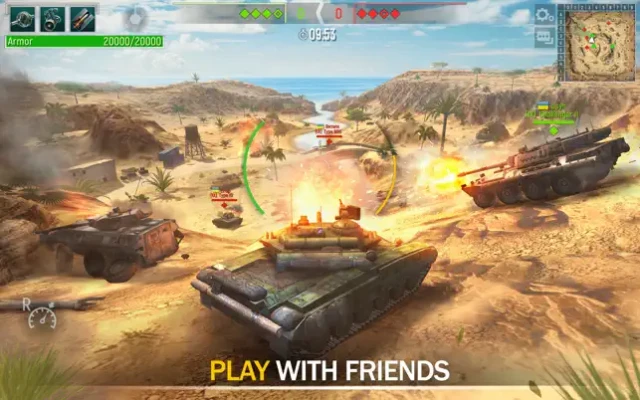 Dive into the world battles:*PVP battles 7x7*Different battle modes*29 advanced crawler and wheeled tanks*Realistic combat arenas that represent different geographical zones*Possibility to take into battle up to 12 tanks