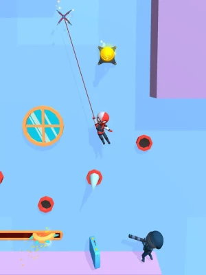 Fly on the web and defeat the enemies.