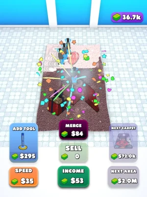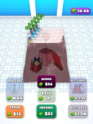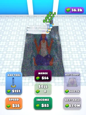 Your customers need you! You need to vacuum and wash up old carpets, make them brand new, and sell them to lucky people! You can unlock new and beautiful carpets to earn more money than ever. Are you ready to make a fortune?