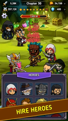 ➤ HIRE heroes to help defeat all monsters and bosses
