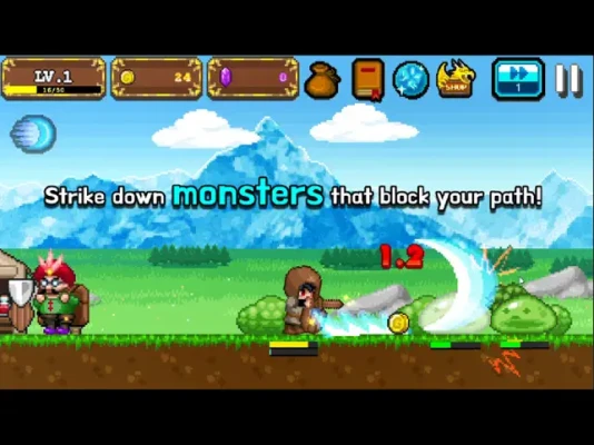 Strike down monsters that block your path.