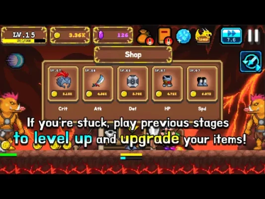If you're stuck, play previous stages to level up and upgrade your items .