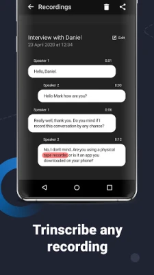 Record incoming and outgoing phone calls in high-quality audio with just a few taps. The call recorder app captures every word and securely stores it on your phone: business calls, interviews, client conversations, or just a daily chat.