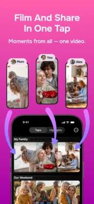 Use TapYou for anything — a family weekend, a baby’s first year, or just everyday life. Only invited people can join. Your videos are safely stored in the cloud, so your phone stays light.