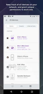 - Guard: Real-time online protection from the seven most common types of malicious threats, hackers, and cyber-criminals. - Adapt: Run speed tests, see signal strength by device, who’s connected to your network, and which devices are most active. - Control: Intuitive tools for managing users, devices, parental controls, network access, and sharing network usernames and passwords. - Sense: Turn connected devices into a camera-free, home-monitoring system.