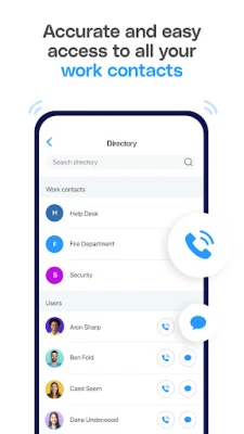 • Call log - Caller ID to recognize calls from your work contacts