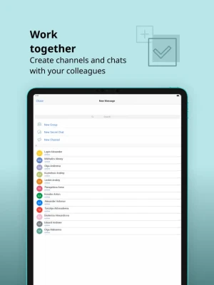 Your messages are stored in a secure cloud. Synchronization means you can access your messages and chats from any device. Just install Technogram on your smartphone and start discussing work anywhere, for example, on the way to the office.