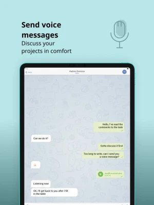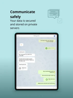 Your chats are protected: the messages you send are encrypted and stored on internal private servers. You can discuss any projects without being afraid of hacks and leaks.