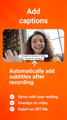 * Automatically add captions / subtitles to your videos or export a .srt file to import your captions into YouTube, Facebook or other video platforms.
