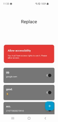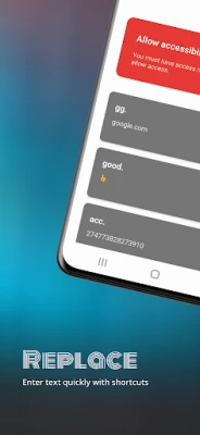 * Guide to using the accessibility service API It uses the accessibility service API to analyze the text entered by the user and convert it to a replacement set as a shortcut. The text entered by the user is not transmitted to the server or stored on the device, but is used only for analysis, and the core function of the app cannot be executed without the permission of the corresponding accessibility service API.