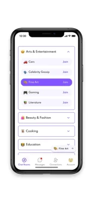 - Explore in real time the many categories of rooms to choose from such as Entertainment, Romance, Opinions Support and more.