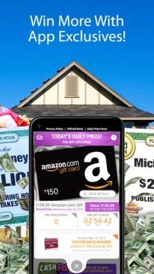 App Exclusive Daily Prize Giveaway that could have you taking home money, gift cards or big, brand name merchandise! Winners are GUARANTEED!