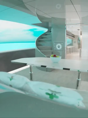 Concerned by the yacht's behavior, which seemed to have lost its will, he tried calling out to it from outside the yacht, but received no response.