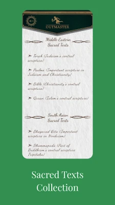 1. Sacred Texts Collection: Embark on a spiritual journey through our extensive collection of holy books, featuring the Torah, Psalms, Bible, Quran, Bhagavad Gita, Dhammapada, Tao Te Ching, and the Book of Mormon. Each text is meticulously presented, providing profound insights into the core beliefs, teachings, and narratives that have shaped the world's major religions. Dive deep into the scriptures that have guided and inspired millions throughout history.