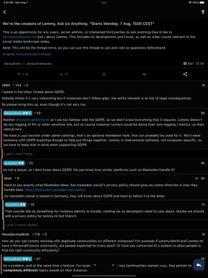 Here's a peek at what Thunder offers: - Multi-account support: Login to all your accounts, and switch between them at ease - Fully customizable settings: Choose your own splash of accent, customize your own gestures, and much more - Swipe gestures: Navigate and interact with your favourite communities, posts, and comments all through customizable swipe gestures.