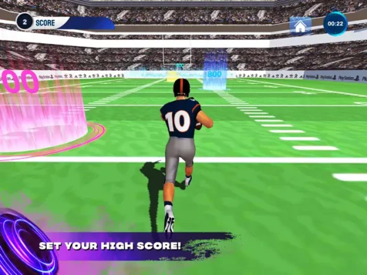 Intense running back gameplay: Navigate challenging levels, avoid defenders, and score touchdowns.