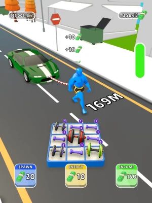 Merging is very important and critical in this game, set your strategy, merge the dumbbells and watch your character grow their muscles. In this way, your character can easily pull even heavy cars.