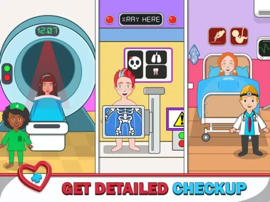 Welcome to pretend play games where you are allowed to touch and interact with everything! Use your imaginations and creativity to explore, we present you another pretend game where you create your own hospital story in this super exciting town hospital life adventure. Get ready to play different roles of hospital staff such as doctor, nurse, receptionist, patient and much more. Have fun in the pretend town hospital, interact and play different roles of pretend city hospital. Each pretend town hospital room is available for some extreme house fun.