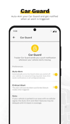 - In-App Car Guard remotely “locks” the position of your vehicle