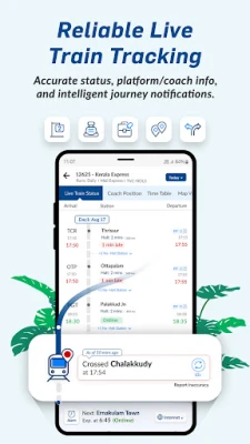 Real-time location, platform number, coach position, and delay alerts—all in one place.