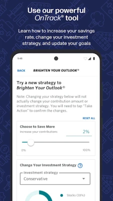 Get OnTrack®: Use our powerful OnTrack® tool to learn how increasing your savings rate, changing your investment strategy, or updating your retirement goals might brighten your retirement.