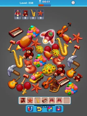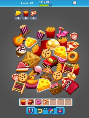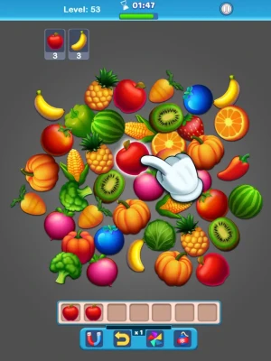 How to Play? • Remember, you’re racing against time! Each level has a set time limit. • During this time, aim to collect similar objects on the tiles located at the bottom of the gameplay screen. • Keep in mind: there are only 7 tiles available. You'll fail the level if you fill them up without making any triple matches. • Your goal is strategically using the tile spaces, creating triple matches, and collecting the required number and type of objects to complete the level within the time limit.