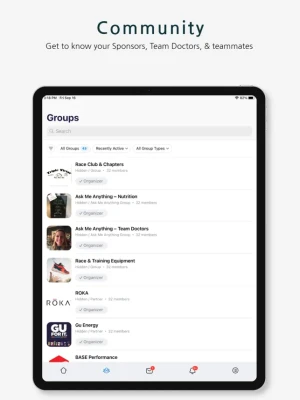 - Join Race Team & Chapter Groups to communicate with fellow athletes
