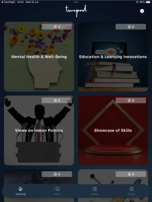 Truepad is an all new video-chatting platform through which you can discuss and dig deep into the world’s most interesting trending topics, ponder over one’s opinion and simply get your daily dose of knowledge as well as laughter. It’s a free platform that allows you to have conversations and discussions with people around the world or just spectate the conversations. Truepad is divided into two sections; the TRENDING SECTION and the MOOD SECTION. On the Trending Section, you will get to choose from different trending topics to discuss. Every week, we change the topics to allow for interesting and insightful discussions. If you don’t want to speak, you will have the option to spectate the discussion. On the other hand, our Mood Section has been designed to help you channel your inner emotions. You can select an mood out of the of 10 moods displayed. Based on your current mood, you will be paired with someone of the opposite mood to help you regulate your feelings. Our Mood Section has no Spectators, because it is all private conversation section.
