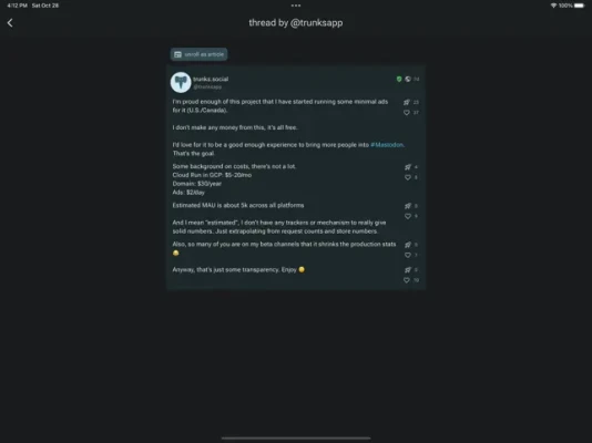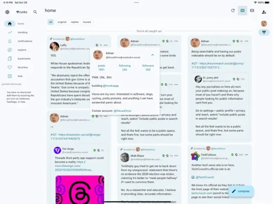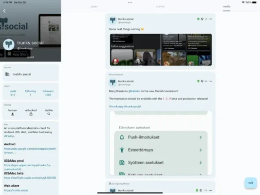 trunks for Mastodon is the best way to experience Mastodon any of your devices. With its rich features and intuitive interface, trunks makes it easy to stay connected with your friends, follow your favorite topics, and discover new content.