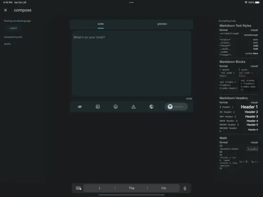 - Markdown support: Use Markdown to format your posts and make them stand out.