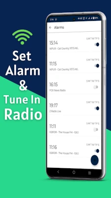 * Set Alarm for radio station and tunein radio on time.