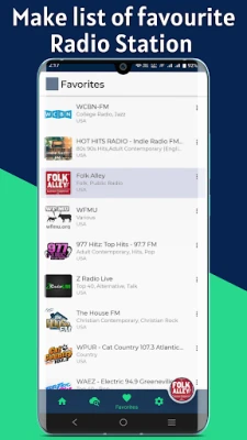 * Radio FM allow you to create favourite radio station list.