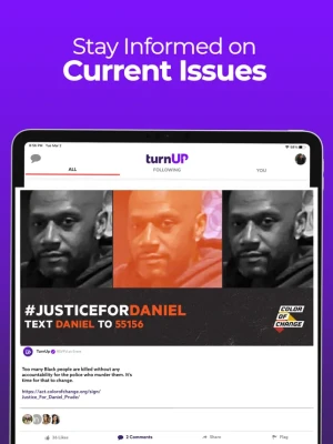 TurnUp is a social network app for youth activism. Get social! Fill your feed with issues, events, people, resources and organizations that you care about. See what your friends and your selected organizations have been doing. Find and share events, digital activism opportunities and post like you would on other social media platforms.
