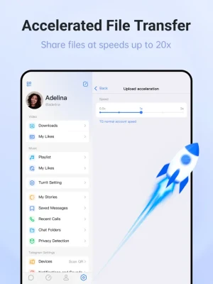 * Accelerated File Transfer: Share documents, media, and other files at speeds up to 20x or compressed quality.