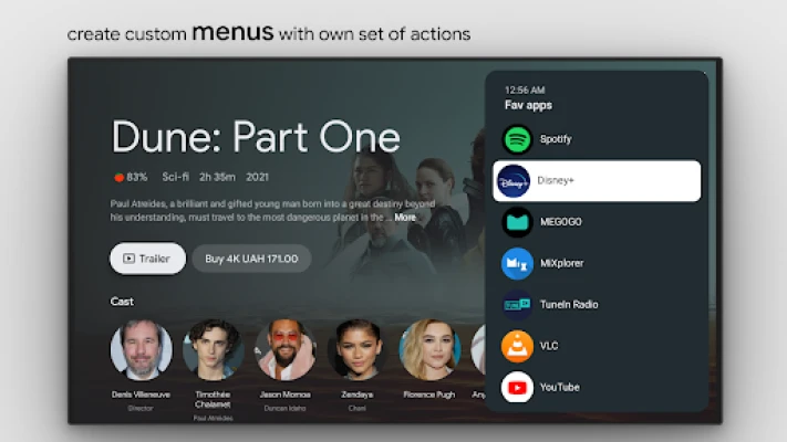 In addition, you can set actions on power on, sleep entering or exiting, create custom channels for Android TV home from menus and lock apps.