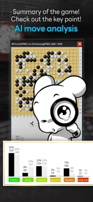 After the game, AI analyzes the moves and divides them into six categories: "perfect," "good," "general," "not good" "mistake," and "bad move" so that it can be seen at a glance.
