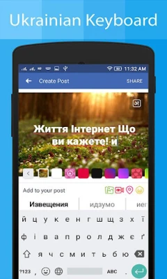 Ukrainian keyboard app will allow you to write message, story, posts, blogs, Emails in Ukrainian or Ukrainian Alphabet language in any social media apps and chat apps.