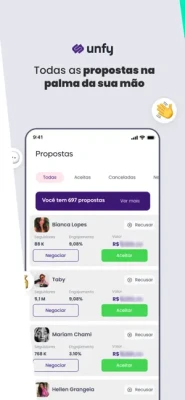 A Unfy é uma plataforma digital que conecta influenciadores de diversos segmentos e tamanhos com marcas e agências.