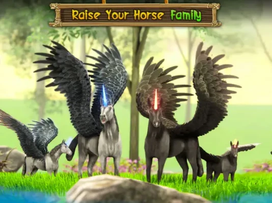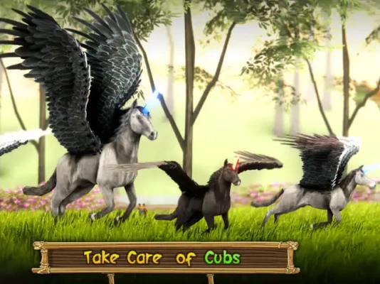 Play this game to be a magic horse in our animal simulator! Turn into a beautiful Pegasus and start adventures, fight with wizards, tigers, dinosaurs, panthers, and many more animals, look for health and magic flowers. This is an animal simulation like you have never seen. We combine your favorite fantasy elements with realistic animal simulations.