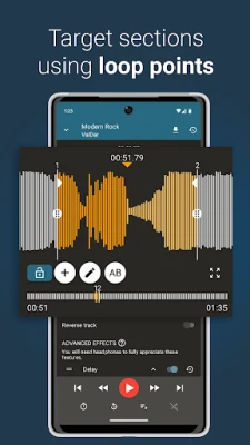 Stuck on a particular section? Precisely set points to loop between. Need more accuracy? Pinch and zoom to get a more detailed waveform view.