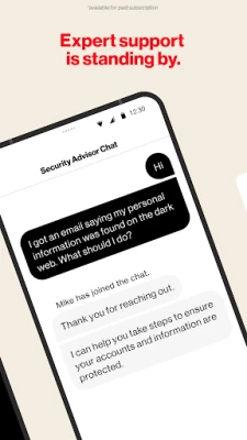• Security Advisor: Chat with an expert 24/7 to get guidance and security tips.