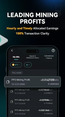 • Manage mining profit and pay with ZERO tx fee.