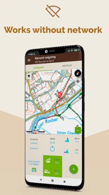 - Record a live route and follow your progress on the map (distance, duration, elevation gain…). If you lose