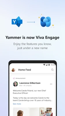 Engage helps you connect with leaders and peers, express yourself, share and discover knowledge and engage in organization-wide communities that matter to you. Stay informed and in touch while on the go with the Engage app. You will experience the same capabilities in a rich mobile design on Engage for Android, formerly Yammer.