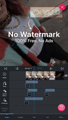 • Multi-track Editing: Layer videos, images and GIFs (PIP) and arrange them easily