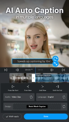 • Auto Caption: Generate perfectly synced captions in one tap, available in multiple languages